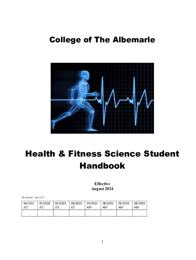 College of The AlbemarleHealth & Fitness Science Student Handbook Effective August 2024 Developed: April 201704/2017 JCC07/2018 JCC05/2019 JCC08/2020 JCC07/2021 ABT08/2022 ABT105/2023 ABT08/2024 ABT2Table