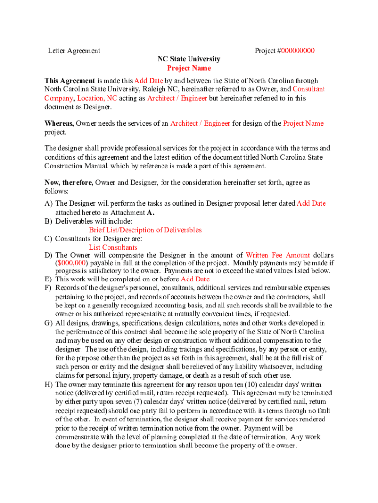 Get the free Letter Agreement - facilities ofa ncsu