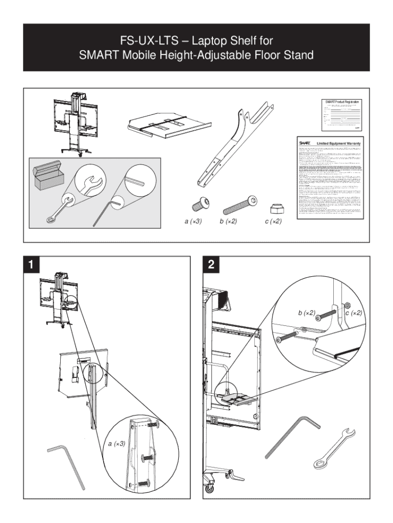 This document provides details regarding the warranty, product registration, and customer support for the SMART Mobile Height-Adjustable Floor Stand and its associated equipment. It outlines the warranty terms, conditions, limitations, and information on how to register the product for continued support.