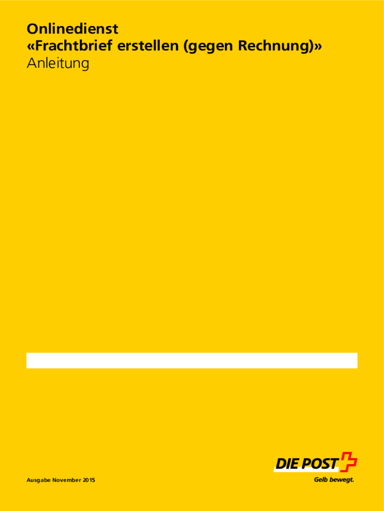 Onlinedienst Frachtbrief erstellen (gegen Rechnung) AnleitungAusgabe November 20151Inhaltsverzeichnis21Einfhrung31.1Zweck des Dokuments31.2Zweck des Onlinedienstes Frachtbrief erstellen (gegen Rechnung)31.3Umfang