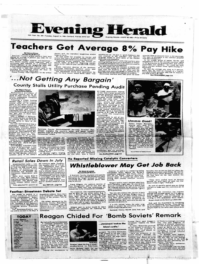 Teachers G et A ve rage 8 % Pay Hike Donna Eatea .. By Bjr._nn* Harald Staff W riter Seminole County\'s school teachers have been ?Qnr / o \"school n J*l\' y year. age 8 P \" \"* Py ra for the 198485