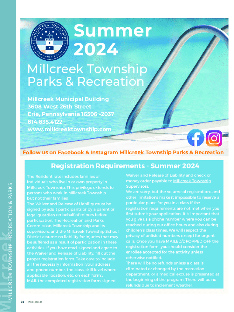 Summer 2024 Millcreek Township Parks & Recreation Millcreek Municipal Building 3608 West 26th Street Erie, Pennsylvania 16506 2037 814.835.4122 www.millcreektownship.comFollow us on Facebook & Instagram