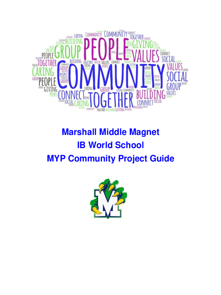 Marshall Middle Magnet IB World School MYP Community Project GuideTable of Contents What is it?5The Four Parts of the Project The Meetings5 6What are the Aims of the Community Project?6Types of Action7Objectives
