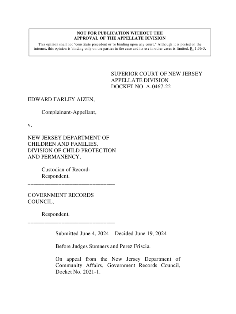 Get the free A-0467-22 - EDWARD FARLEY AIZEN VS. NEW JERSEY DEPARTMENT OF CHILDREN AND FAMILIES, ...