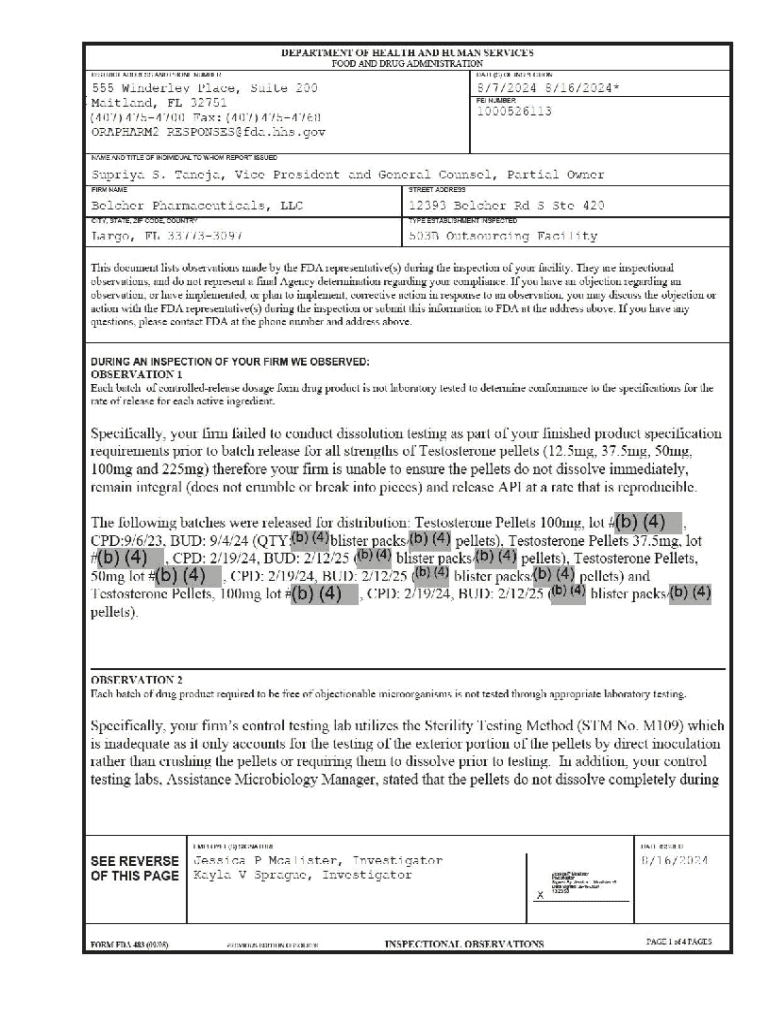 DEPARTMENT OF HEALTH AND HUMAN SERVICES FOOD AND DRUG ADMINISTRATION D ISTRICT ADDRESS ANO PHONE NUMBEROATE(S) OF INSPECTION555 Winderley Place, Suite 200 Maitland, FL 32751 (407)475 47 00 Fax: (407)