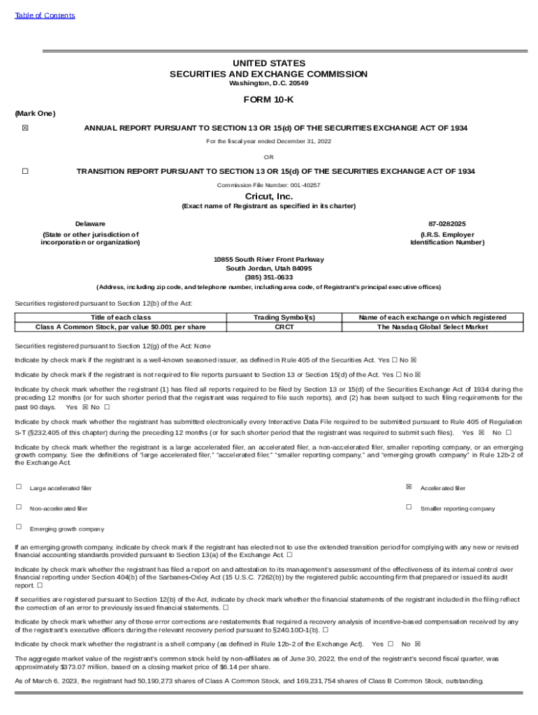 Get the free Form 10-K for Cricut INC filed 03/13/2023. 10-K filed 03/13/2023