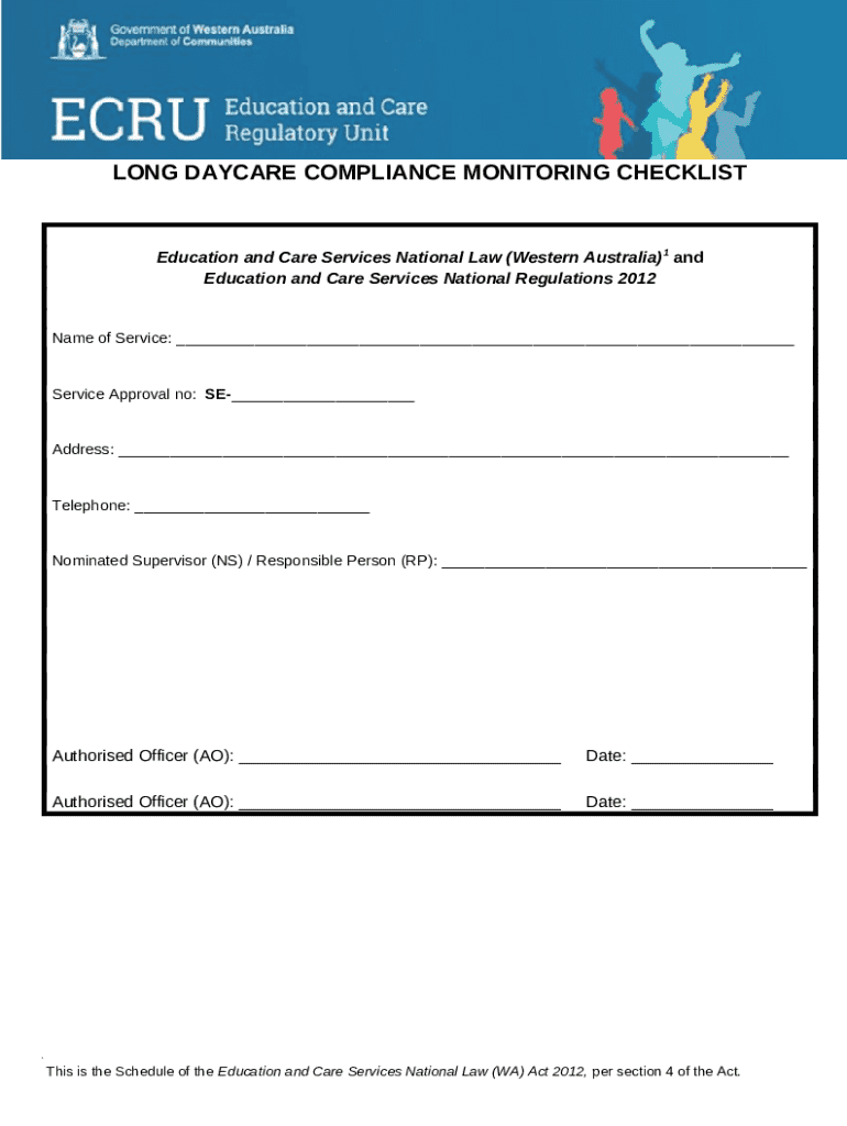 What is long daycare compliance monitoring checklist Form?