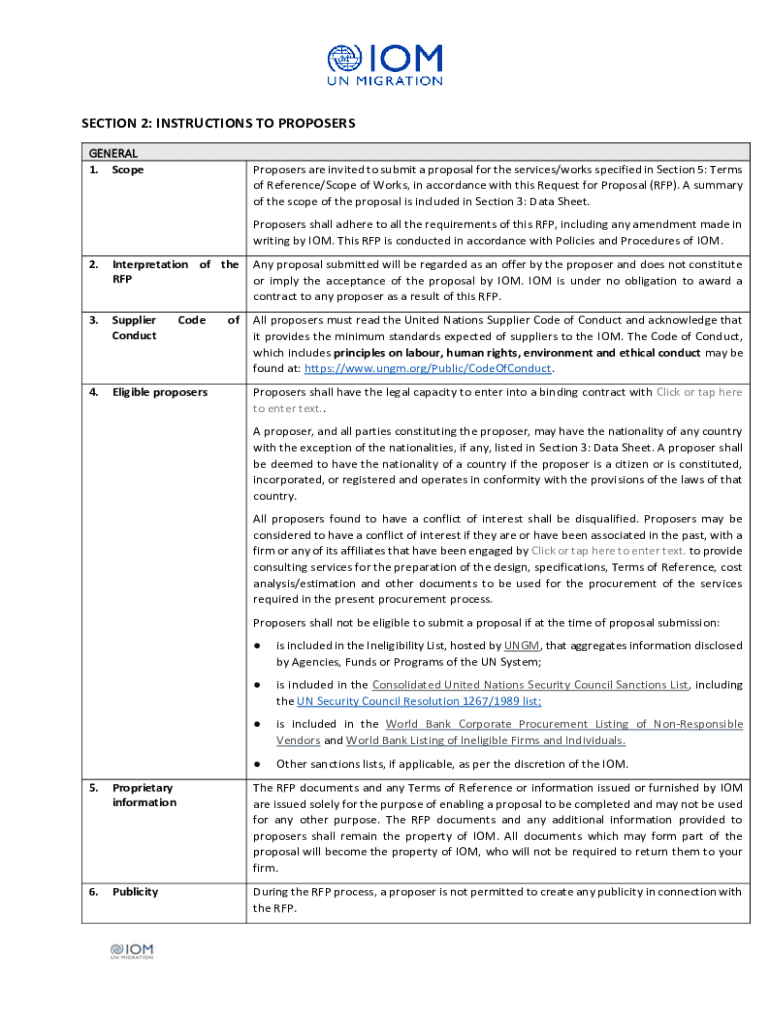 SECTION 2: INSTRUCTIONS TO PROPOSERS GENERAL 1. ScopeProposers are invited to submit a proposal for the services/works specified in Section 5: Terms of Reference/Scope of Works, in accordance with