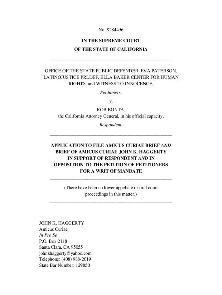No. S284496 IN THE SUPREME COURT OF THE STATE OF CALIFORNIA ___ OFFICE OF THE STATE PUBLIC DEFENDER, EVA PATERSON, LATINOJUSTICE PRLDEF, ELLA BAKER CENTER FOR HUMAN RIGHTS, and WITNESS TO INNOCENCE,