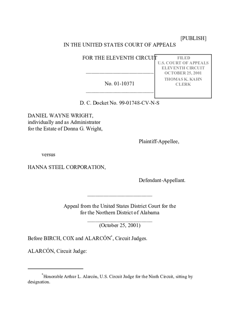 [PUBLISH] IN THE UNITED STATES COURT OF APPEALS FOR THE ELEVENTH CIRCUIT ___ No. 0110371 ___FILED U.S. COURT OF APPEALS ELEVENTH CIRCUIT OCTOBER 25, 2001 THOMAS K. KAHN CLERKD. C. Docket No. 9901748CVNS
