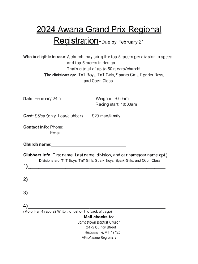 How to fill out 2024 awana grand prix