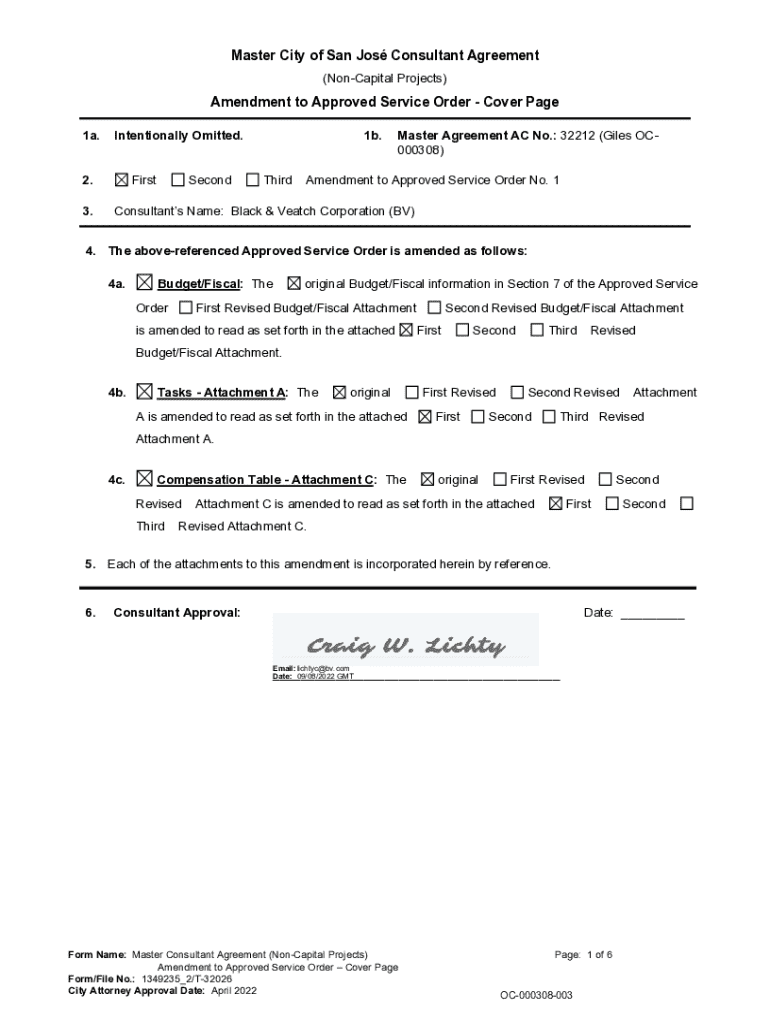 Master City of San Jos Consultant Agreement (NonCapital Projects)Amendment to Approved Service Order Cover Page 1a.Intentionally Omitted.2. 3.FirstSecond1b. ThirdMaster Agreement AC No.: 32212 (Giles