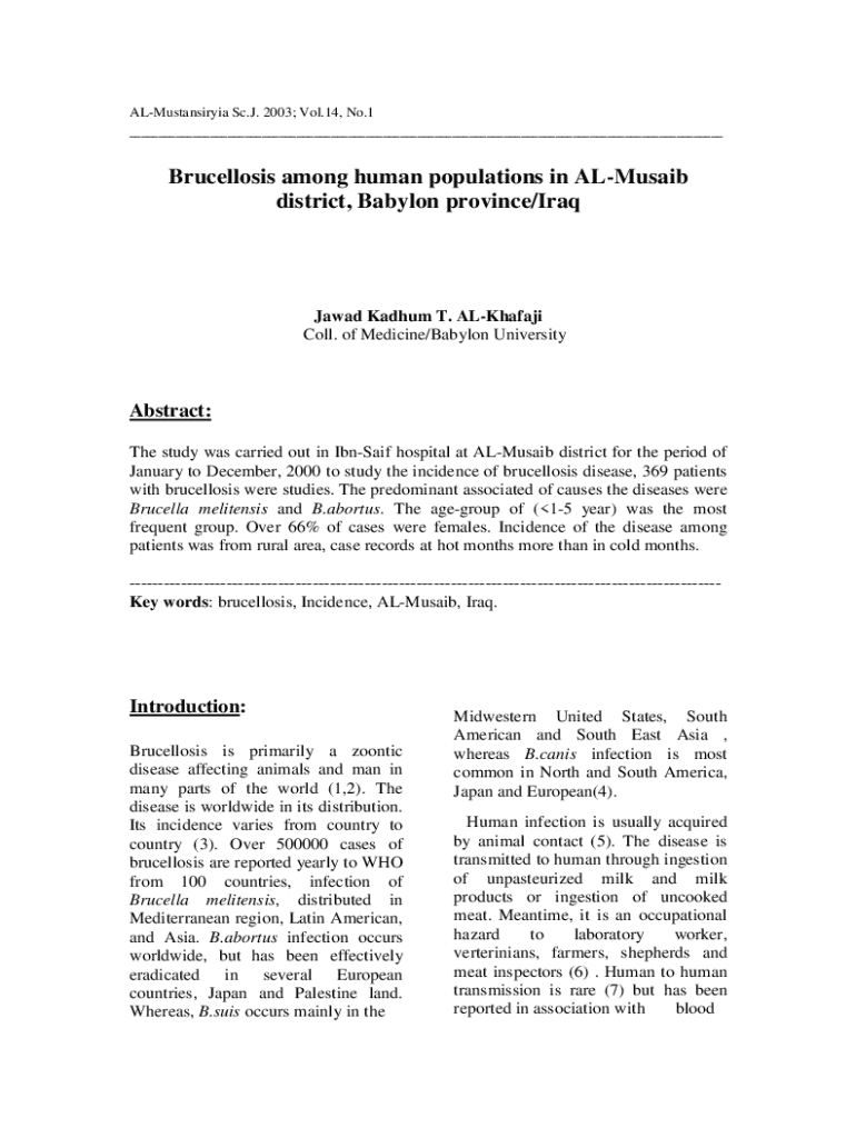 Get the free Brucellosis among human populations in AL-Musaib district ... - citeseerx ist psu