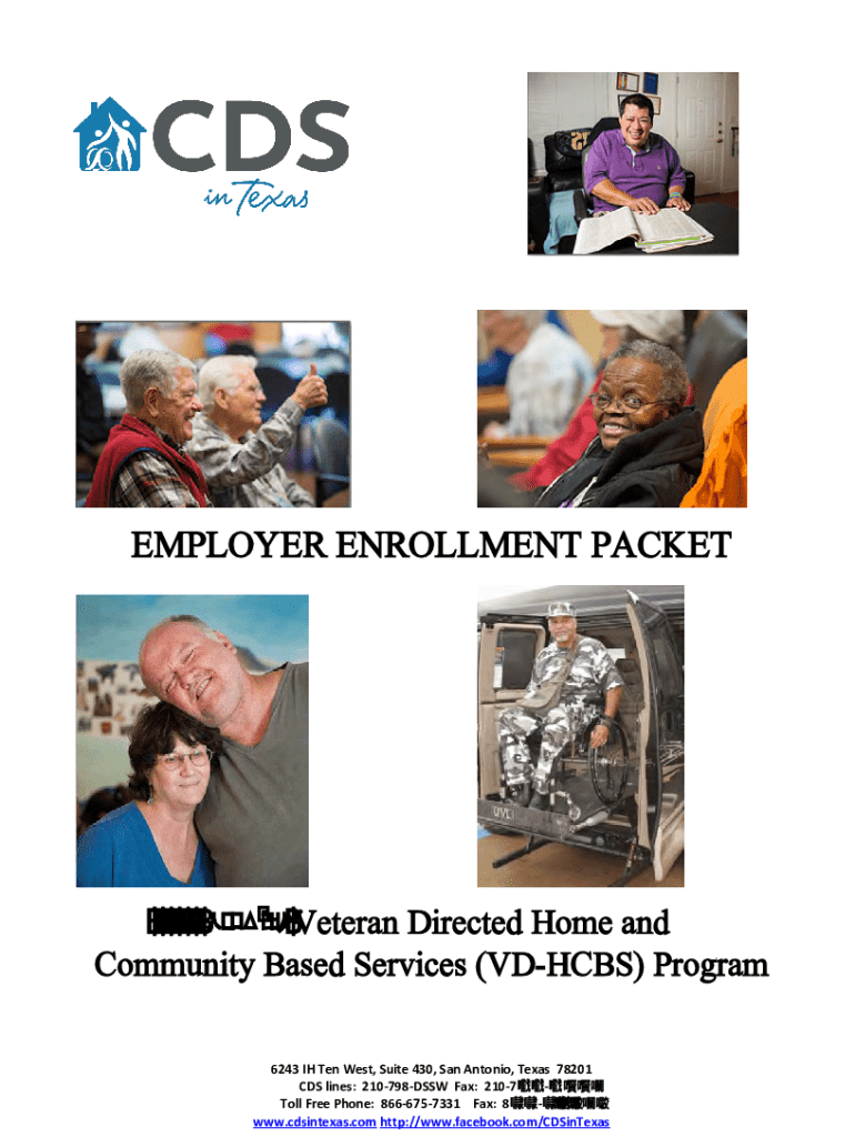 This document serves as an enrollment packet for employers participating in the Veteran Directed Home and Community Based Services (VD-HCBS) Program. It includes instructions, required forms, and a checklist to ensure proper enrollment procedures are followed. The packet outlines responsibilities for employers, designated representatives, and the financial management services agency (CDS in Texas). It also provides essential information on payroll, tax responsibilities, and forms needed for...