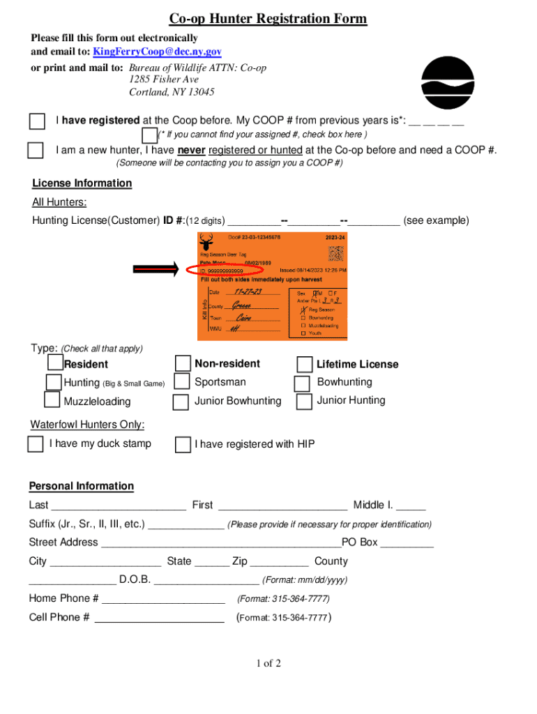 Get the free Co-op Hunter Registration Form - dec ny