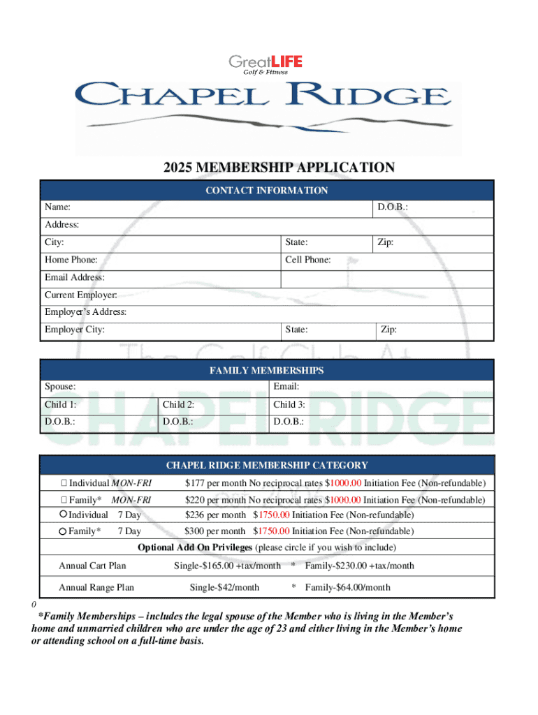Get the free CHAPEL RIDGE MEMBERSHIP CATEGORY
