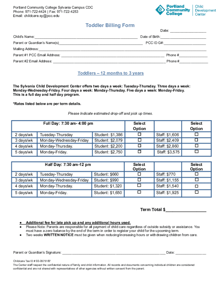 Fill out your toddler billing form 2024-4 online with pdfFiller!