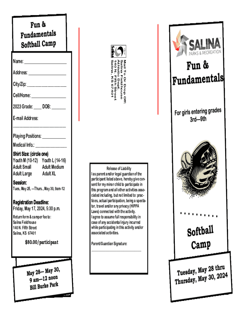Address: ___ City/Zip: ___Cell/Home: ___ 2023 Grade: ___ DOB: ___Mail To Or Drop Off: Salina Fieldhouse Athletic Dept. 140 N. Fifth Street Salina, KS 67401Name: ___Email Address: ___ Playing Positions: