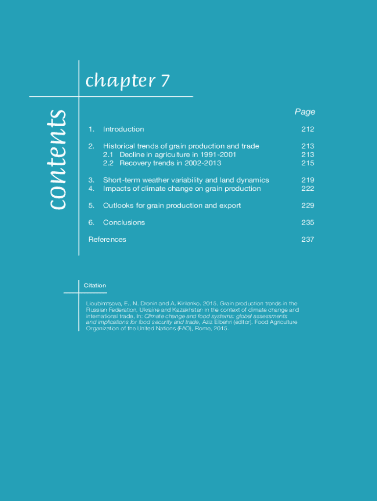 contentschapter 7 Page 1.Introduction2122.Historical trends of grain production and trade 2.1 Decline in agriculture in 19912001 2.2 Recovery trends in 20022013213 213 2153. 4.Shortterm weather variability