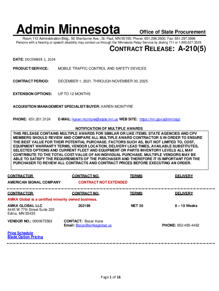 Admin MinnesotaOffice of State ProcurementRoom 112 Administration Bldg., 50 Sherburne Ave., St. Paul, MN 55155; Phone: 651.296.2600, Fax: 651.297.3996 Persons with a hearing or speech disability may