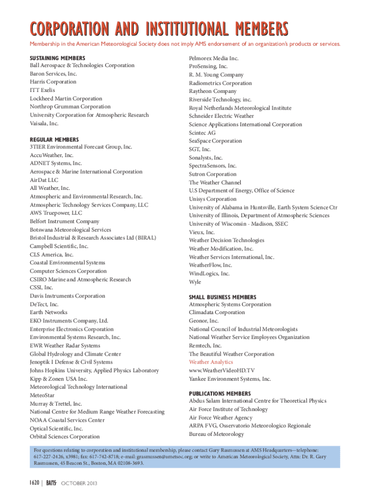 Membership in the American Meteorological Society does not imply AMS endorsement of an organizations products or services. SUSTAINING MEMBERS Ball Aerospace & Technologies Corporation Baron Services,