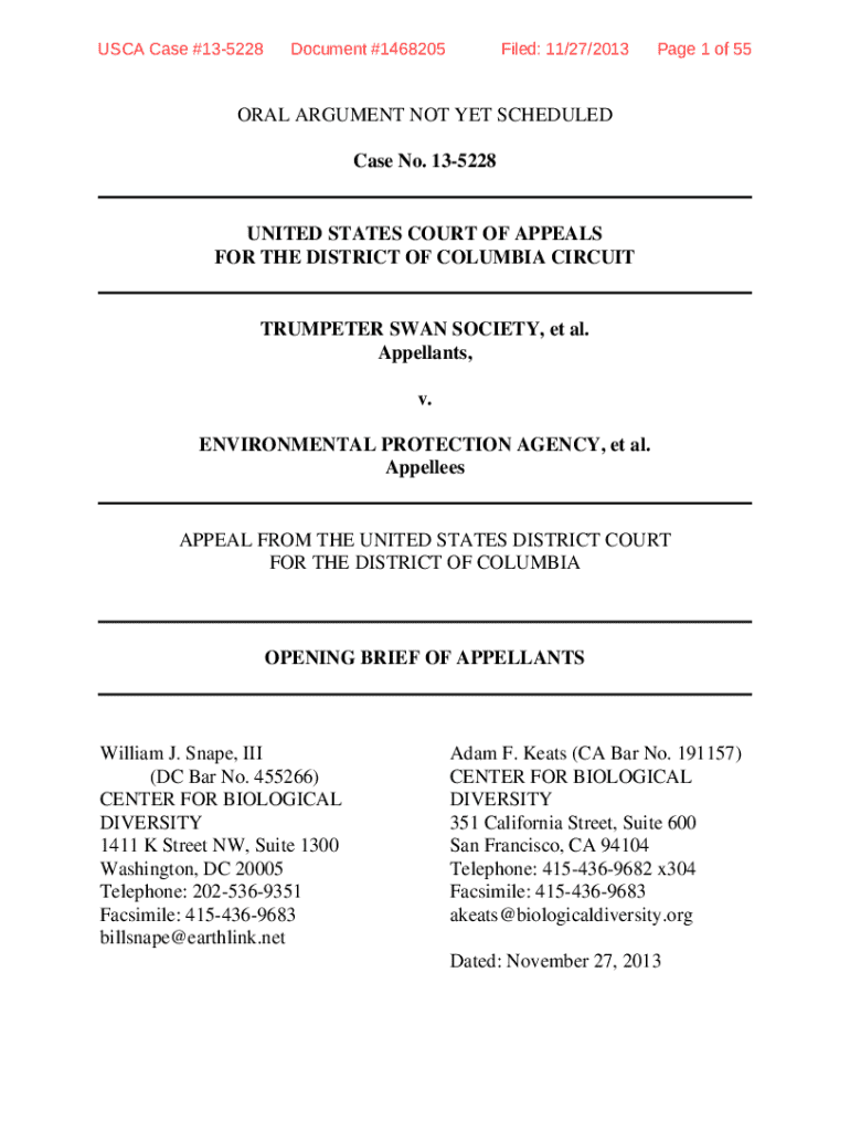 USCA Case #135228Document #1468205Filed: 11/27/2013Page 1 of 55ORAL ARGUMENT NOT YET SCHEDULED Case No. 135228UNITED STATES COURT OF APPEALS FOR THE DISTRICT OF COLUMBIA CIRCUITTRUMPETER SWAN SOCIETY,