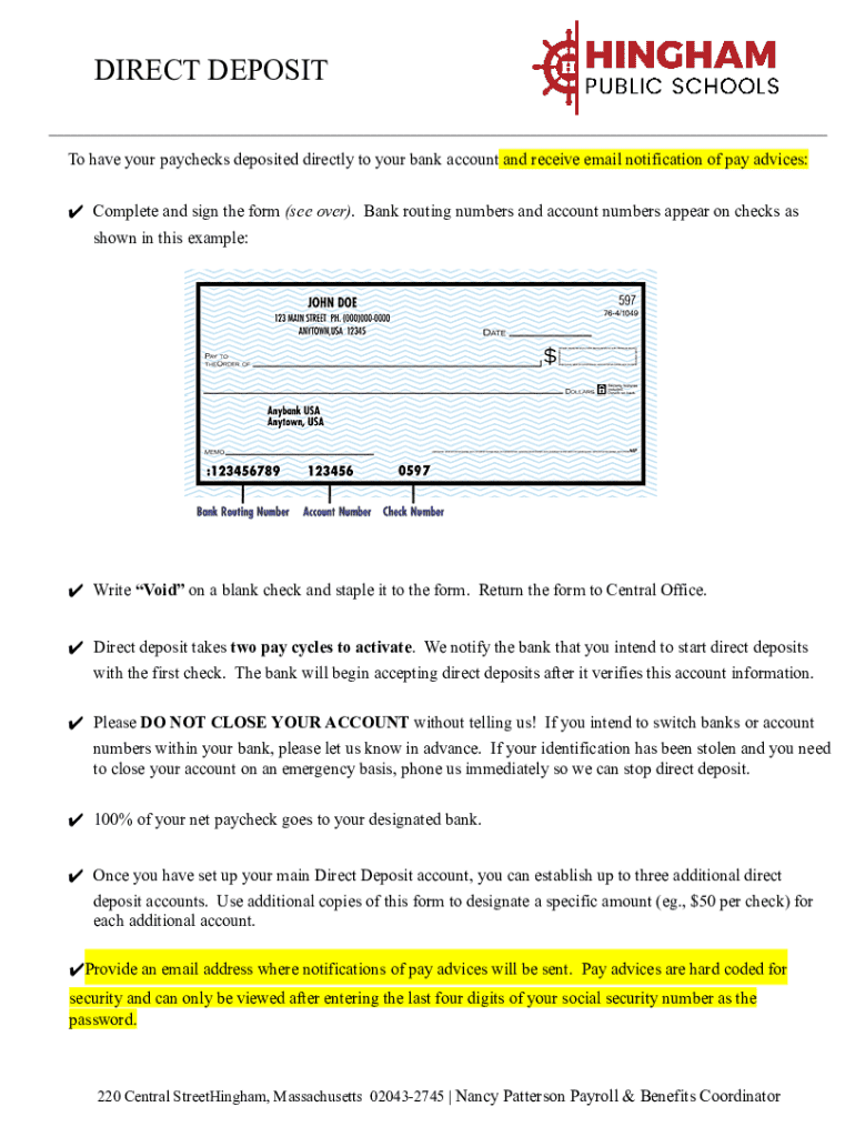 Get the free Direct Deposit with form