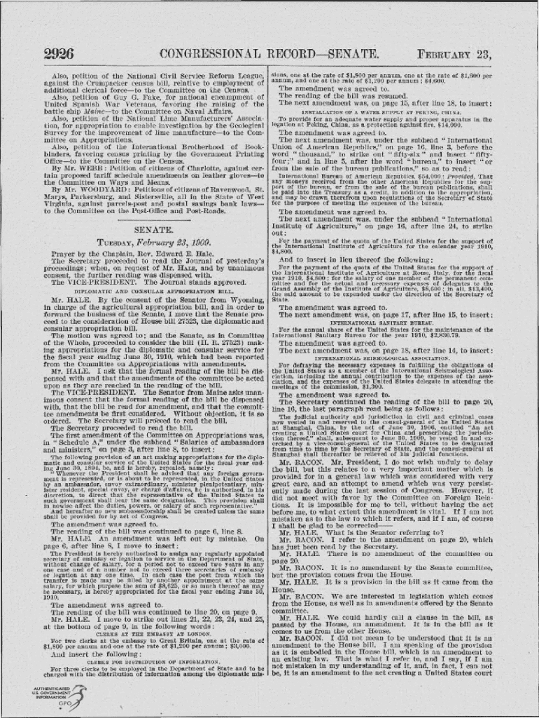 2926CONGRESS!ONAL RECORDSENATE.FEBRUARY23,Also, petition of the Kational Civil Service Reform League; sions, one at the rate of $1,800 per annum, one at tbe rate of $1,600 per against the Crumpacker
