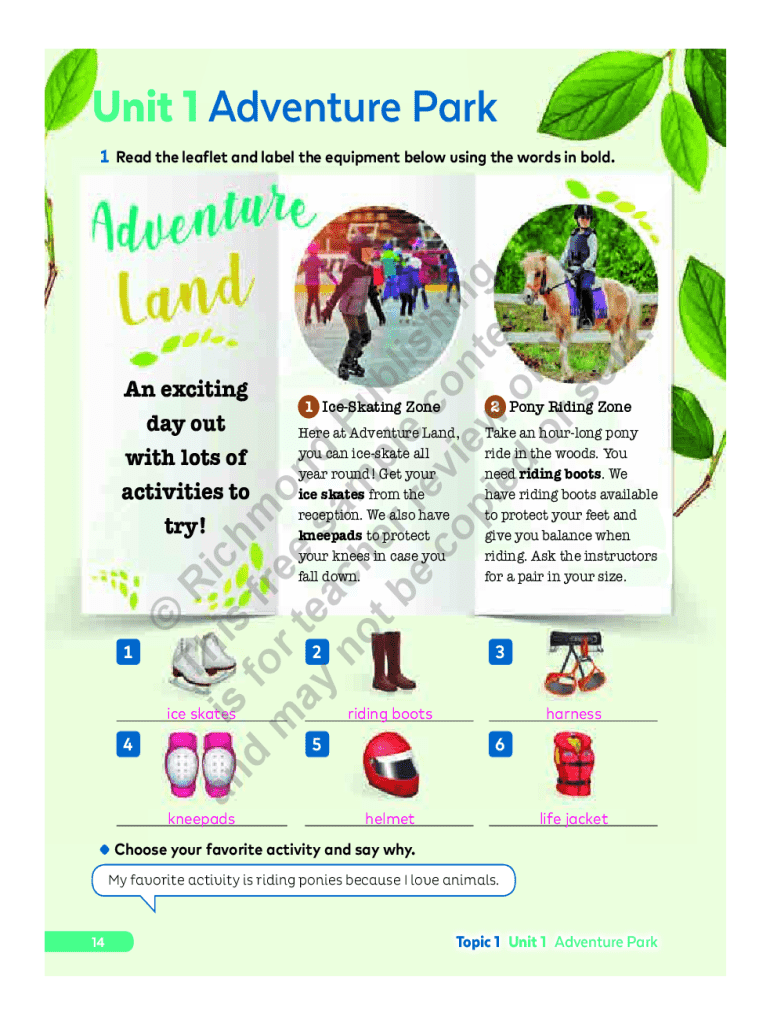 How to fill out unit 1 adventure park?