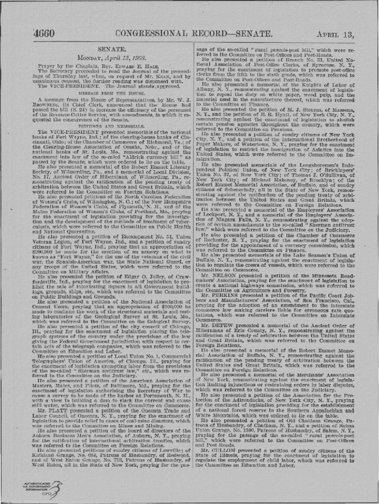 4660CONGRESSIONAL RECORDSENATE. SENATE. fO:NDAY, April13, 1908.Prayer by the Chaplain, Rev. EDwARD E. HALE. The Secretary proceeded to read the Journal of the proceedings ?f Thursday last, when, on