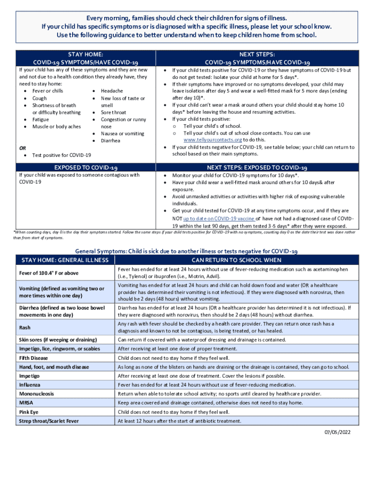 Get the free Every morning, families should check their children for ...
