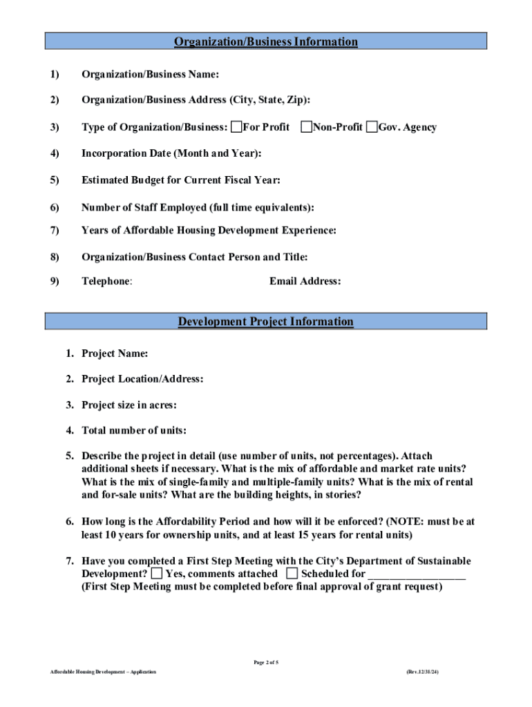 Get the free Request for 2025 Affordable Housing Development Grant Application