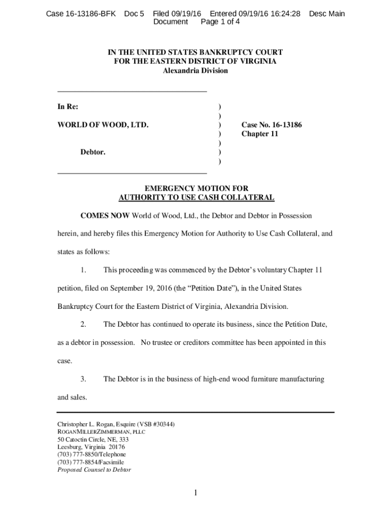 Get the free Emergency Motion for Authority to Use Cash Collateral