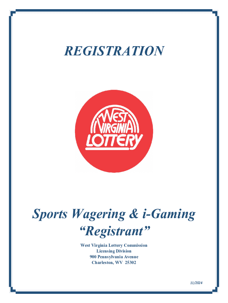 REGISTRATIONSports Wagering & iGaming Registrant West Virginia Lottery Commission Licensing Division 900 Pennsylvania Avenue Charleston, WV 2530211/2024Sports Wagering & iGaming Registrant Instructions