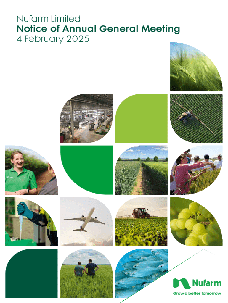 This document serves as the Notice of the 109th Annual General Meeting (AGM) of Nufarm Limited, scheduled for 4 February 2025, outlining the agenda, resolutions to be voted on, and details on how shareholders can participate and vote, either in person or virtually.