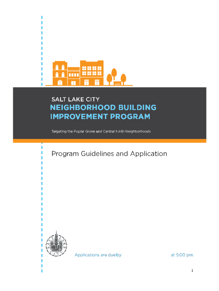 The Neighborhood Building Improvement Program (NBIP) is designed to support the revitalization of commercial areas in Salt Lake City neighborhoods, particularly focusing on Glendale and Poplar Grove. It offers grants of up to $25,000 for facade and blight improvements to assist local businesses and enhance community livability. The program is targeted towards areas with low to moderate-income residents and aims to remove blight while preserving the neighborhood\'s architectural character.