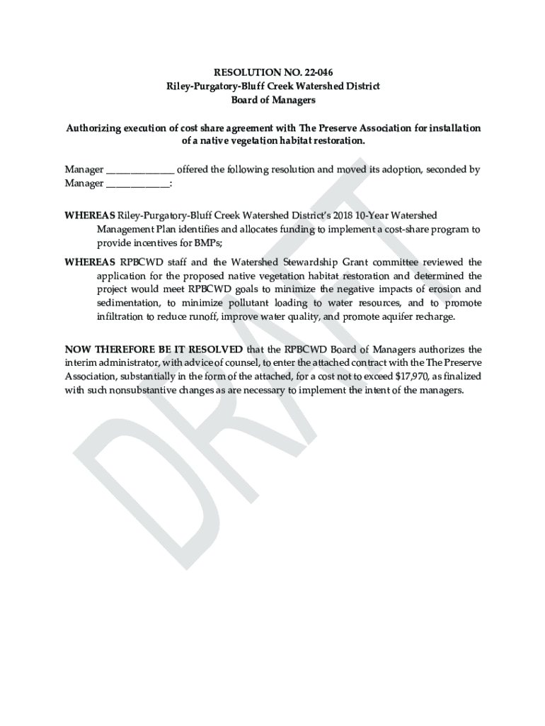 Get the free RESOLUTION NO. 22-046 Riley-Purgatory-Bluff Creek Watershed ...