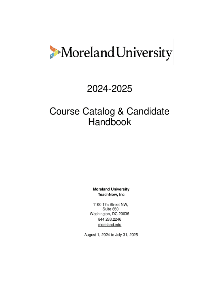 20242025 Course Catalog & Candidate HandbookMoreland University TeachNow, Inc 1100 17th Street NW, Suite 650 Washington, DC 20036 844.283.2246 moreland.edu August 1, 2024 to July 31, 2025TABLE OF