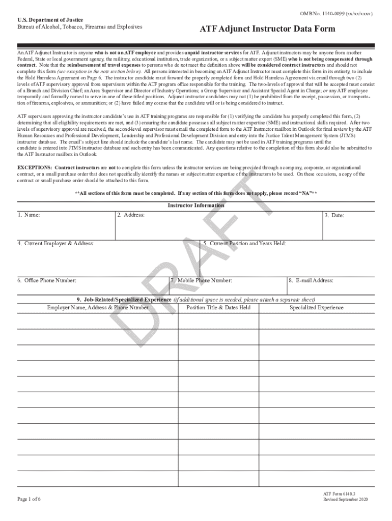 Get the free ATF Adjunct Instructor Data Form. ATF Form 6140. 3 ATF Adjunct Instructor Data Form