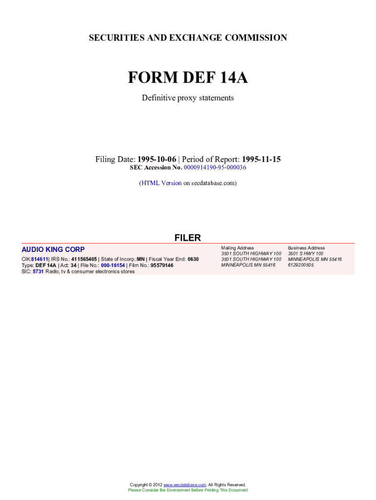 Audio King Corp Form is not the form you're looking for?Search for another form here.