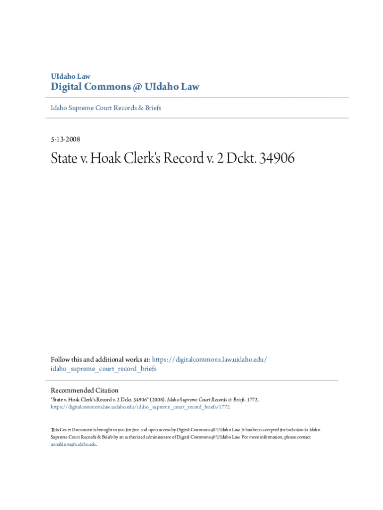 Get the free "State v. Hoak Clerk's Record v. 2 Dckt. 34906"