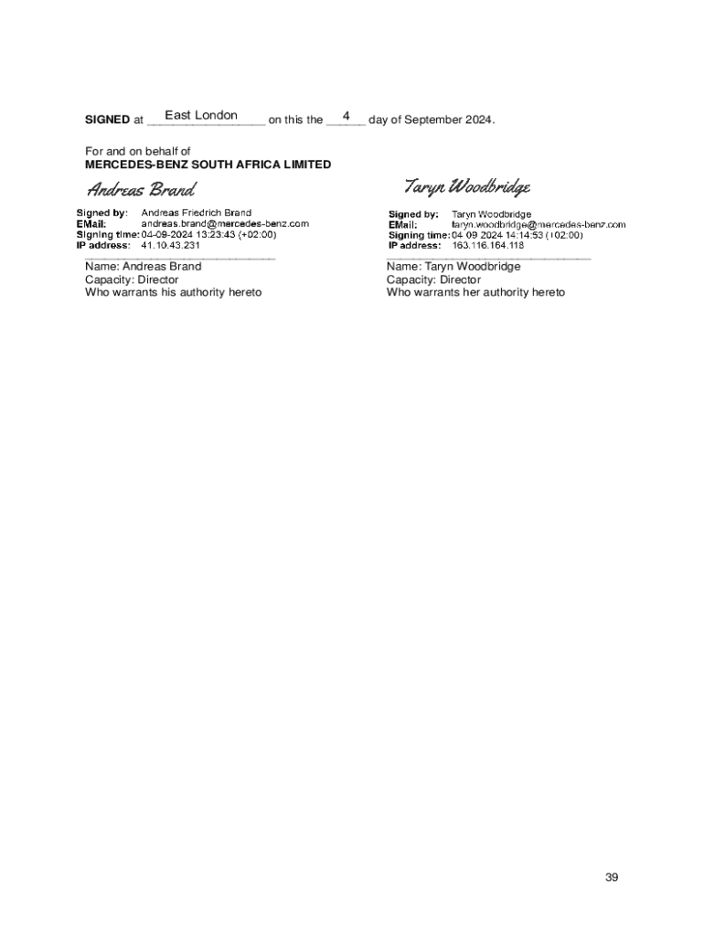 This document serves as an information statement regarding the ZAR35,000,000,000 Domestic Medium Term Note Programme issued by Mercedes-Benz South Africa Limited, as guaranteed by Mercedes-Benz Group AG. It outlines the terms and conditions for potential investors, including details on the structure of the program, risk factors, business descriptions, and governance practices.