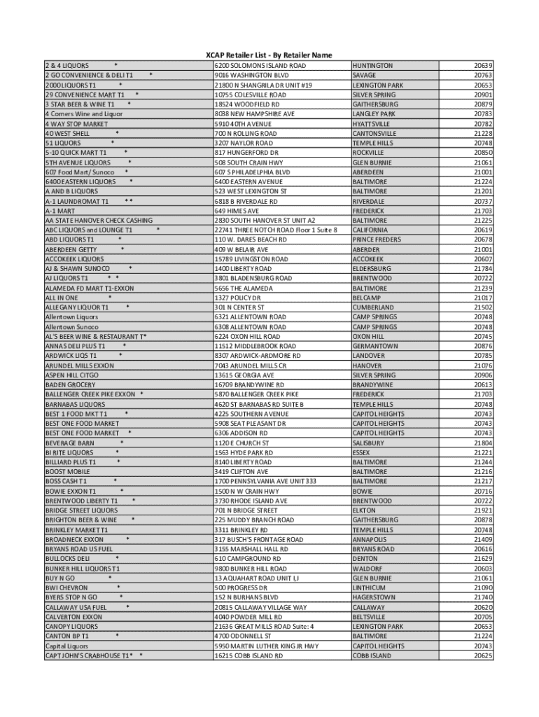 Fill out your xcap retailer list online with pdfFiller!