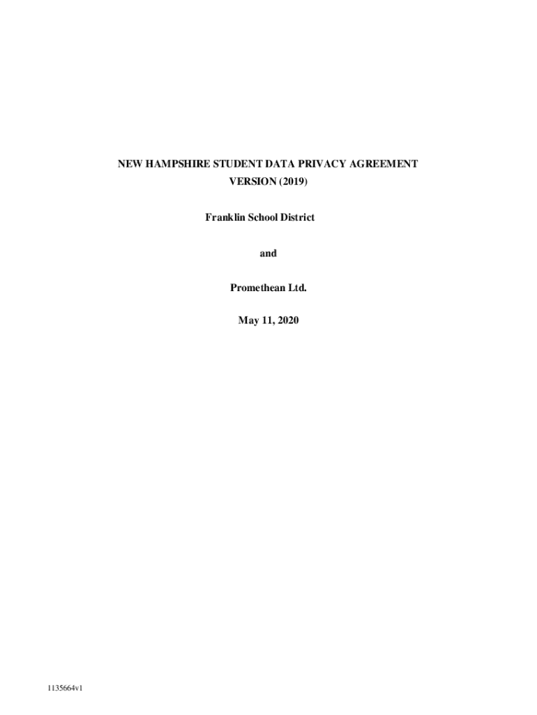 This document outlines the terms and conditions of the Student Data Privacy Agreement (DPA) between the Franklin School District and Promethean Ltd. to ensure compliance with federal and state privacy laws regarding student data management and usage.
