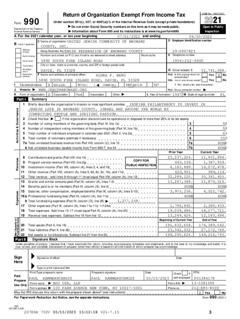 Get the free v1 UNITED JEWISH COMMUNITY BROWARD COUNTY0410302BOCA RATONBUSINESS TAX 990TAX RETURN...