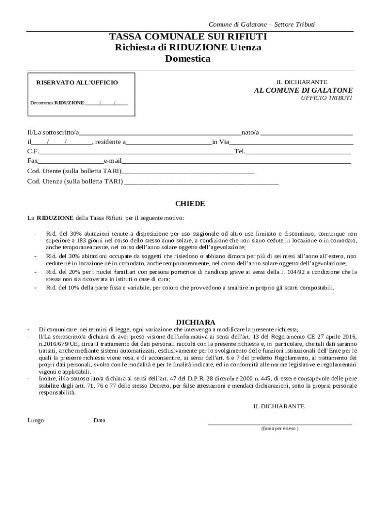 Instructions for the form Tassa sui rifiuti - TUTTOSERVIZI PA - Citt di Monteroni di Lecce