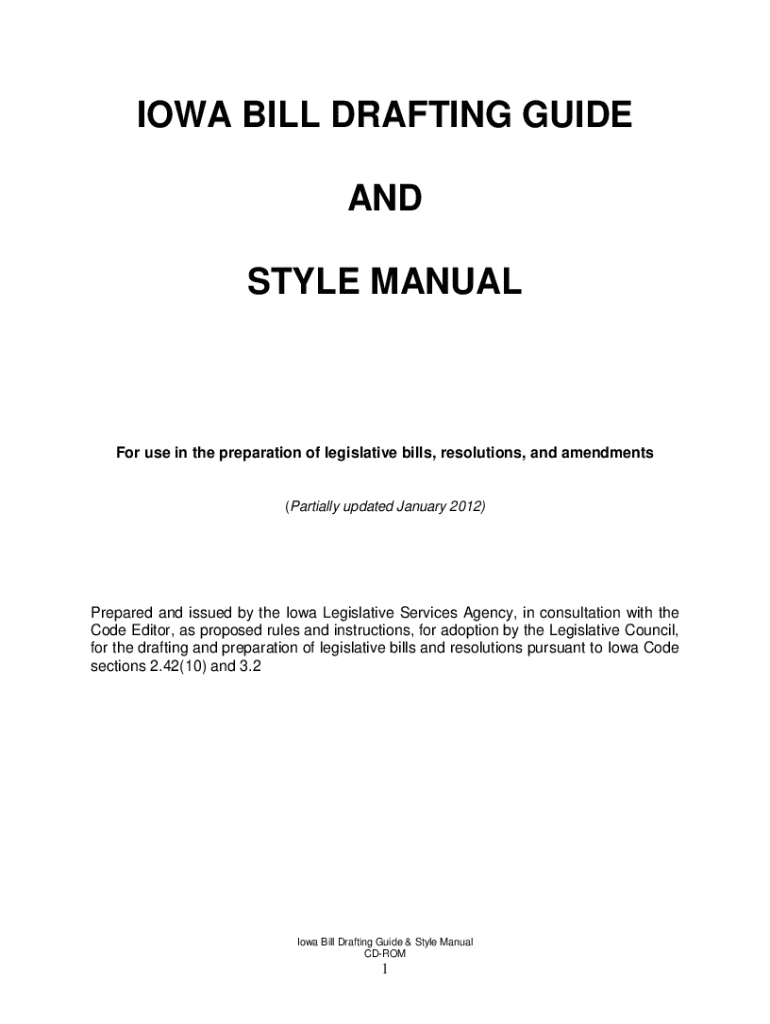 Members of the Iowa Legislature, as well as individuals or entities proposing legislation, are required to follow the Iowa Bill Drafting Guide when submitting bills.