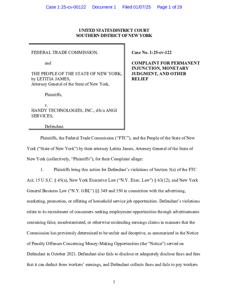 Case 1:25cv00122Document 1Filed 01/07/25Page 1 of 29UNITED STATES DISTRICT COURT SOUTHERN DISTRICT OF NEW YORK Case No. 1:25cv122FEDERAL TRADE COMMISSION, and THE PEOPLE OF THE STATE OF NEW YORK,
