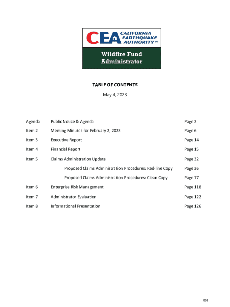 TABLE OF CONTENTS May 4, 2023AgendaPublic Notice & AgendaPage 2Item 2Meeting Minutes for February 2, 2023Page 6Item 3Executive ReportPage 14Item 4Financial ReportPage 15Item 5Claims Administration
