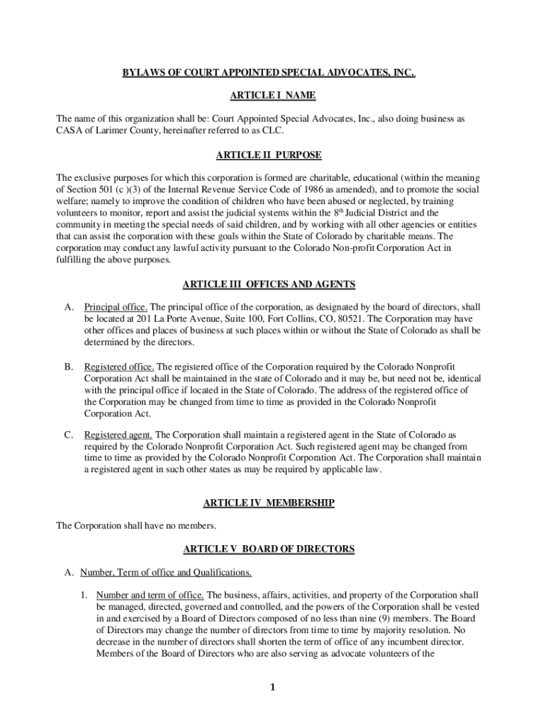 Get the free BYLAWS OF COURT APPOINTED SPECIAL ADVOCATES, INC